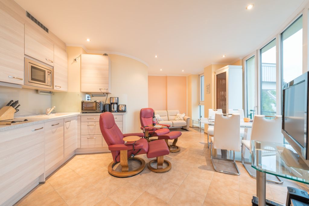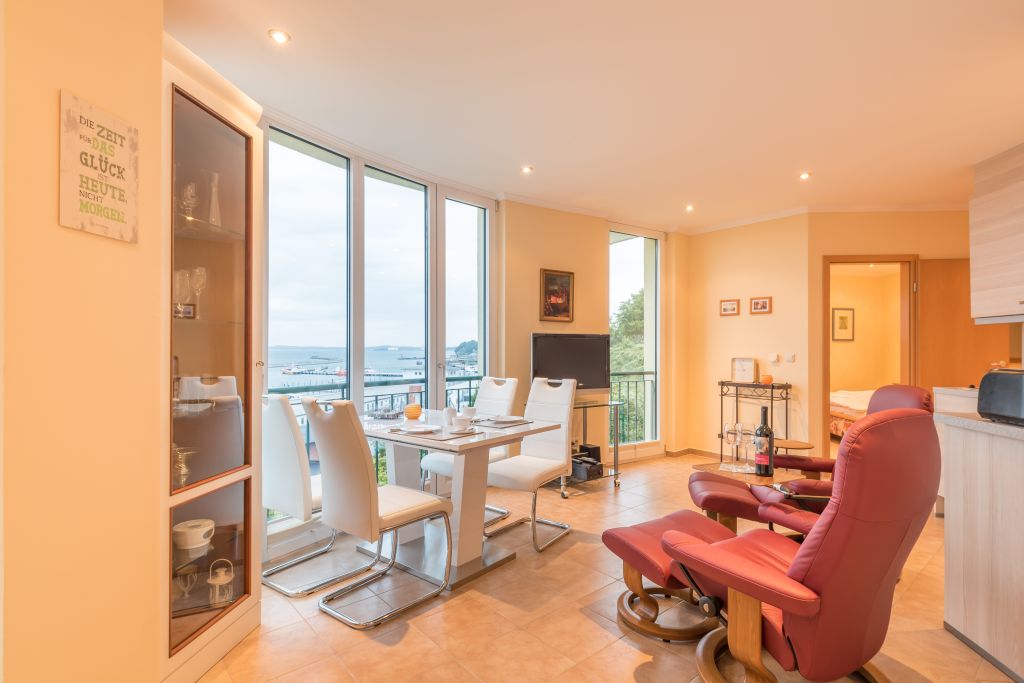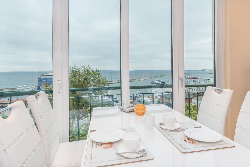 Die hochwertig ausgestattete Wohnung liegt im 1. OG des modernen Anbaues (2005) der historischen Seelotsenstation von 1894. Von hier aus haben Sie einen wunderschönen Blick über den Saßnitzer Hafen und die Ostsee.