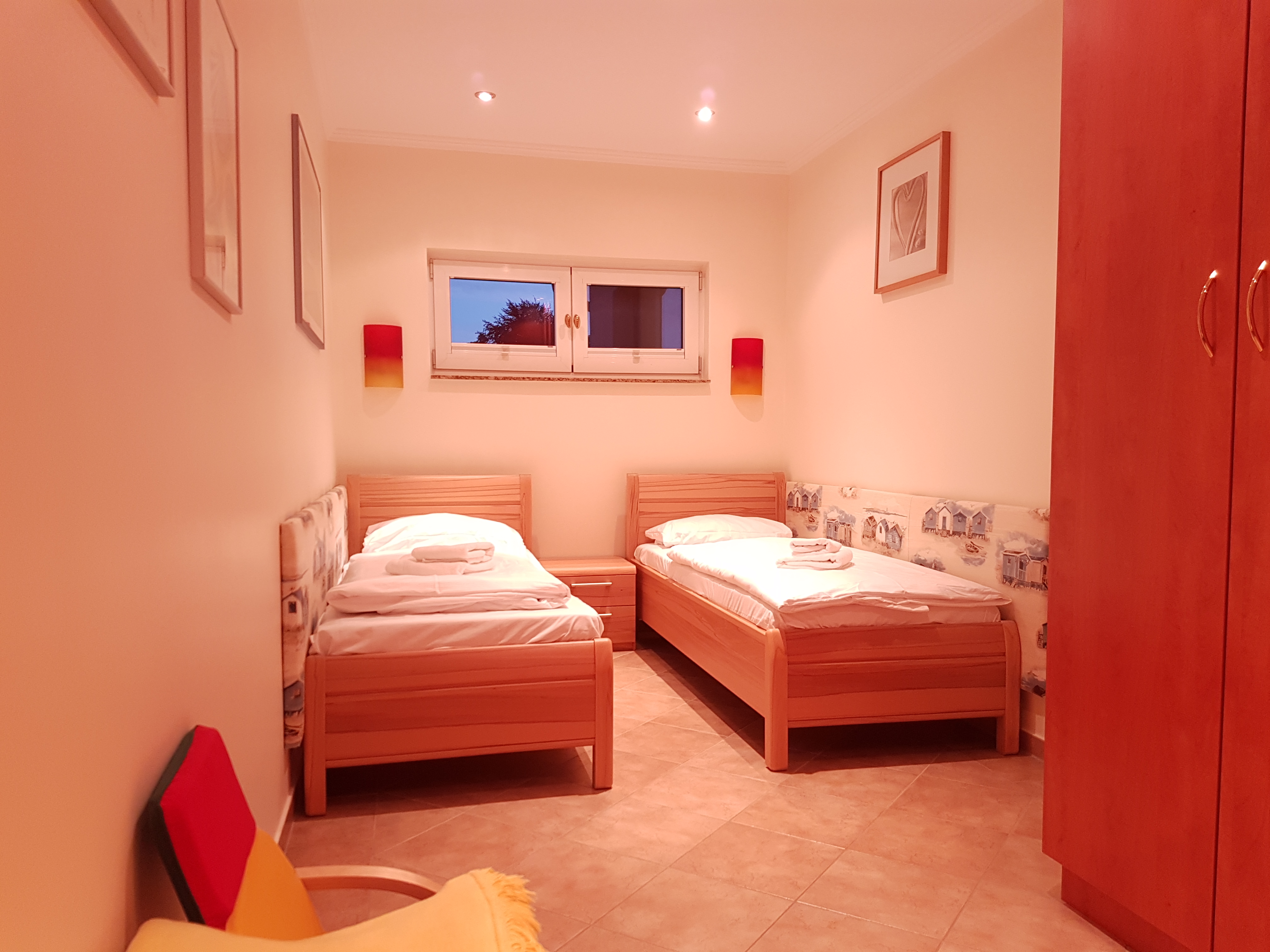 Die ca. 60 qm große Wohnung besteht aus 2 Schlafzimmern, 1 Duschbad, 1 Wohnzimmer (Sat-TV, HDTV, DVD, W-Lan) mit moderner Küchenzeile und Essecke sowie einem eigenen PKW-Stellplatz auf dem Grundstück. Waschmaschine und Trockner (Münzautomaten) im Gemeinschaftskeller. Haustiere sind nicht erwünscht. Nichtraucher-Wohnung
